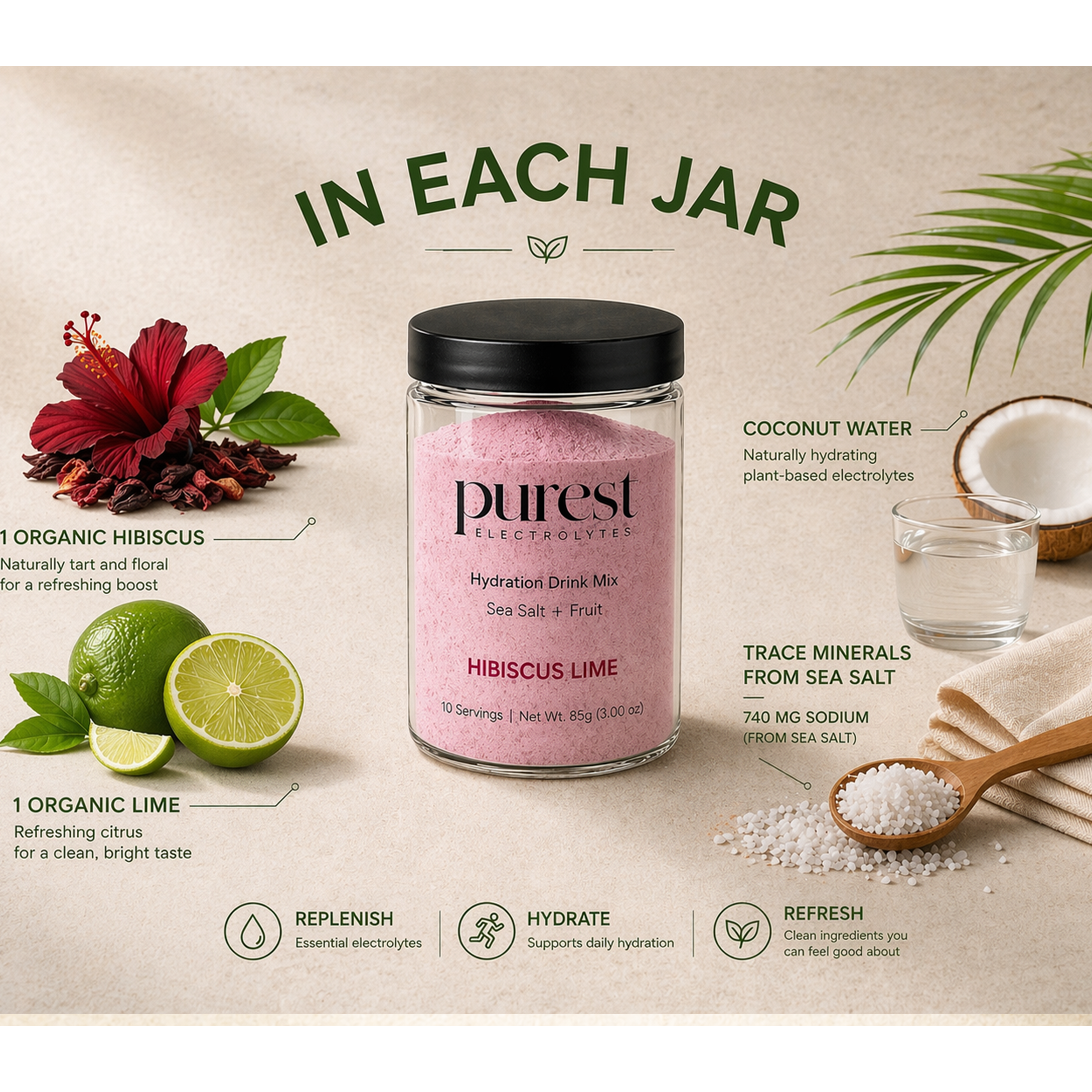 Purest Electrolyte™ is the ONLY complete hydration system that uses a proprietary blend of sun harvested sea salts and freeze-dried fruits to ionize water and efficiently hydrate the body.