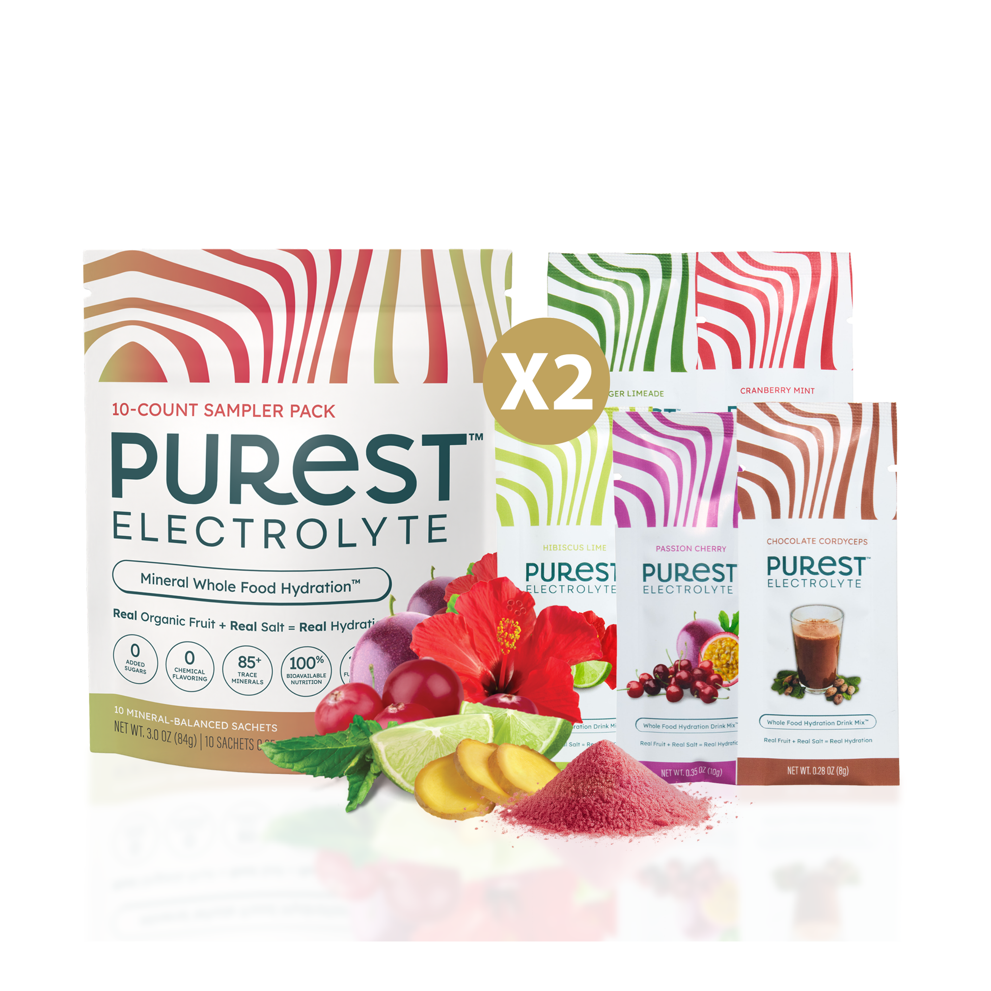 Purest Electrolyte™ is the ONLY complete hydration system that uses a proprietary blend of sun harvested sea salts and freeze-dried fruits to ionize water and efficiently hydrate the body.
